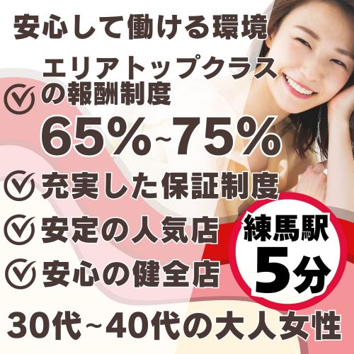 ★セラピストさん大募集中★大人セラピストが活躍できるお店です!☆友達紹介キャンペーンあり※移動時間がかかる。話を聞いても働きたいと思うかどうかも分からない。そういった方は、LINEビデオ通話でお店の説明やご質問など対応いたします。練馬駅から徒歩5分~☆池袋から乗り換えなし最短6分☆所沢からも乗り換えなし最短17分☆大江戸線も通っており好立地♪応募資格・条件☆20代〜40代の大人な日本人女性☆資格・経験は一切必要ありません☆未経験者・ブランクありの方でもOK☆経験者・資格者の方優遇します♪☆他店との掛け持ち、Wワーク、主婦、子育てママ、シンママ歓迎&在籍中です!