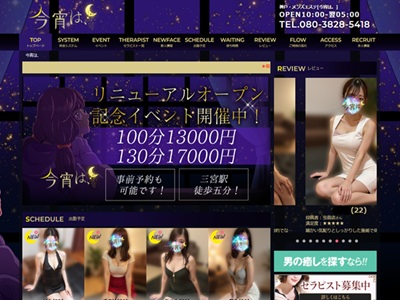 「週刊エステ見た」とお伝えください♪☆リニューアルオープン記念イベント☆1000円OFF プラス 10分延長!!90分14,000円→100分13,000円120分18,000円→130分17,000円週刊エステ見たで割引がスムーズにご案内できます。 080-3828-5418