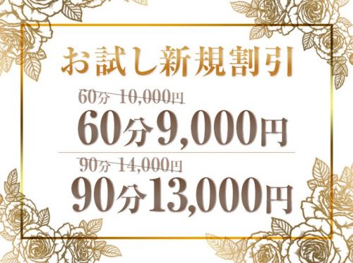 基本コース 60分 10,000円 90分 14,000円 120分 18,000円 オプション 延長30分 6,000円 リピート指名 1,000円 チェンジ・キャンセル 5,000円 本指名料 2,000円 |