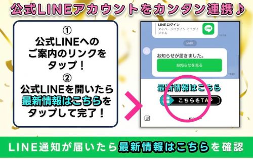 今まで通り公式LINEに通知が届きますのでマイページにアクセスして最新情報をチェックしてみてください!