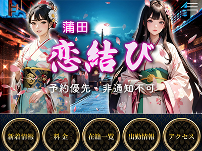 蒲田駅のメンズエステ恋結びです♪ 駅から近くてアクセス抜群! 和の心「おもてなし」の精神をお楽しみ下さい☆ ハイクオリティなおもてなしをご堪能頂ければ、すっきり気分爽快です! ちょっと疲れ気味、というかたは是非当店をお越しください♪ 皆様のご来店をまってま~す♪