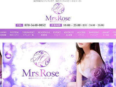 『岐阜メンズエステ ミセス ローズ』20代後半から40代のセラピストによる大人の癒し。ドキドキと安らぎの空間をご提供いたします。
